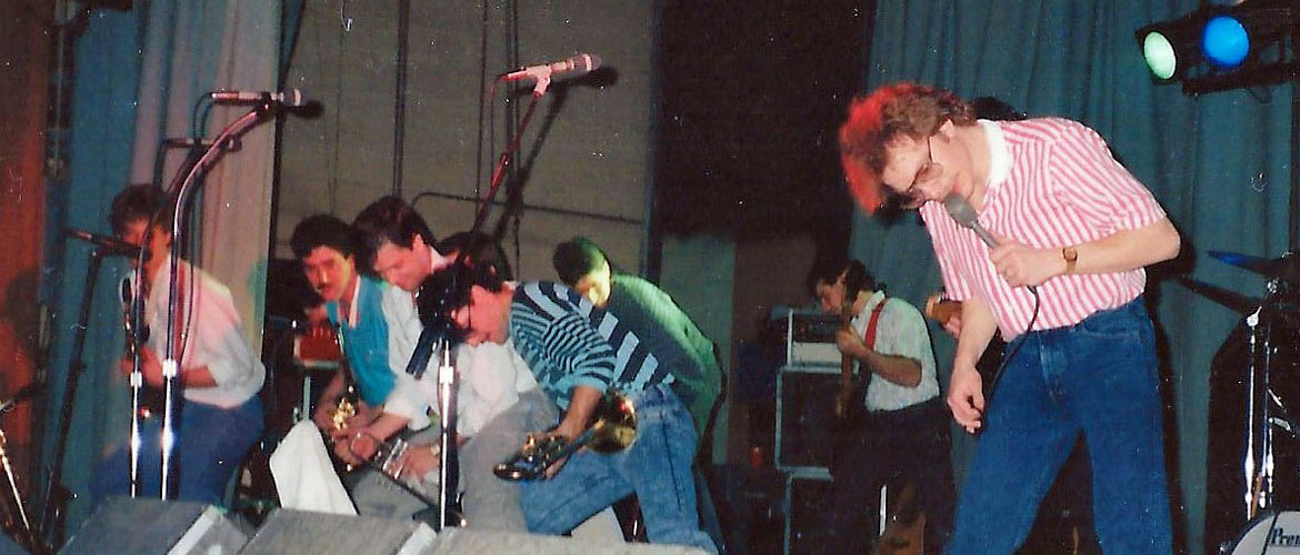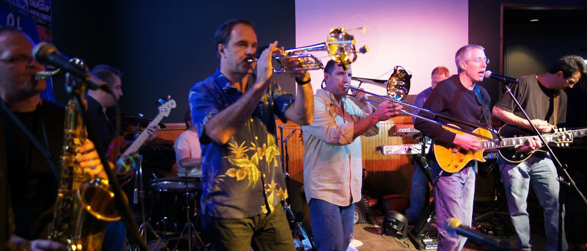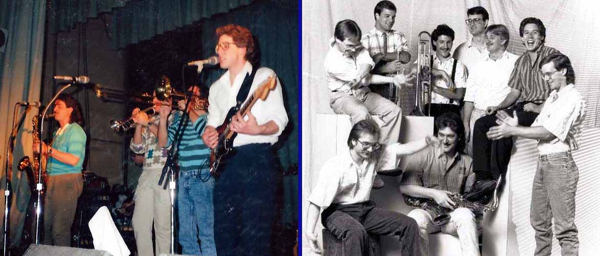 Rob Vincent, Bob Matzen, Jeff Strauss, Al Widmer, Joe Blatnik, and Mike Sosic, grabbed their instruments (musical, that is) with a few cool, refreshing beverages and headed to Jeff’s house. There, they attempted to play along with the Blues Brothers album. As this weekly Friday night gathering continued, and the music actually starting to sound like recognizable songs, the circle of friends realized that additional members would be required to complete this ensemble. Joe Blatnik, having made acquaintance with Dan Hannan through the Wickliffe High School marching band, asked him to join in as the trombone player. Knowing that his long time friend and guitar player, Kurt Kendig and his keyboard playing brother Layne had recently severed ties with a band called “Destiny”, Dan suggested that they be asked to join in on the musical endeavor.