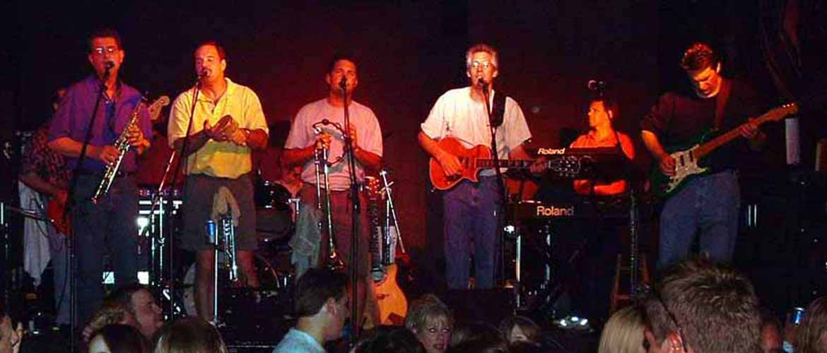 From 1991 on, Pieces of Eight continued to play at Put-in-Bay on an annual basis, a variety of local bars and night clubs, an occasional gig in the Flats in Cleveland, as well as regular Christmas and New Year’s Eve Parties. In addition to a one-time gig at the Cleveland IX Center for an indoor amusement park, (at which the Brass played an entire song on a revolving Ferris wheel) Pieces of Eight began to play an occasional wedding to take temporary refuge from the smoke and alcohol-induced antics of night club patrons. One such marital celebration at Put-in-Bay saw prominent Hollywood actor, William H. Macy, join the band on stage to “assist” with background vocals.