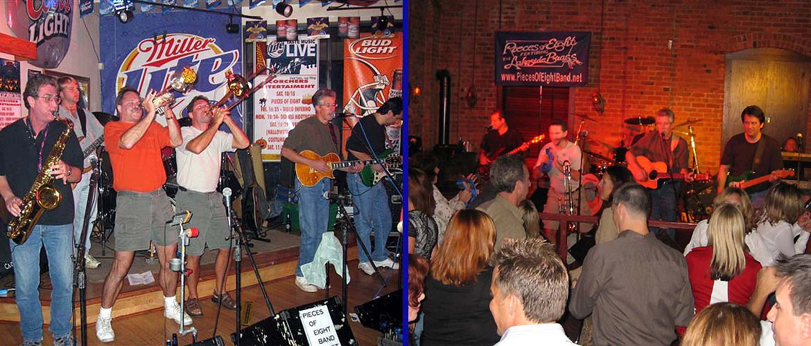 After finally recovering from Pieces of Eight’s 1999 20-year anniversary celebration, attended by nearly 800 family members, friends, fans, and former band members, Dave DeWalt left the band in December 2002. As the search for a new bass guitarist ensued, Joe Lazar was sighted in the vicinity perched atop and neighborhood barstool and agreed to end his self-imposed 13-year musical hiatus.