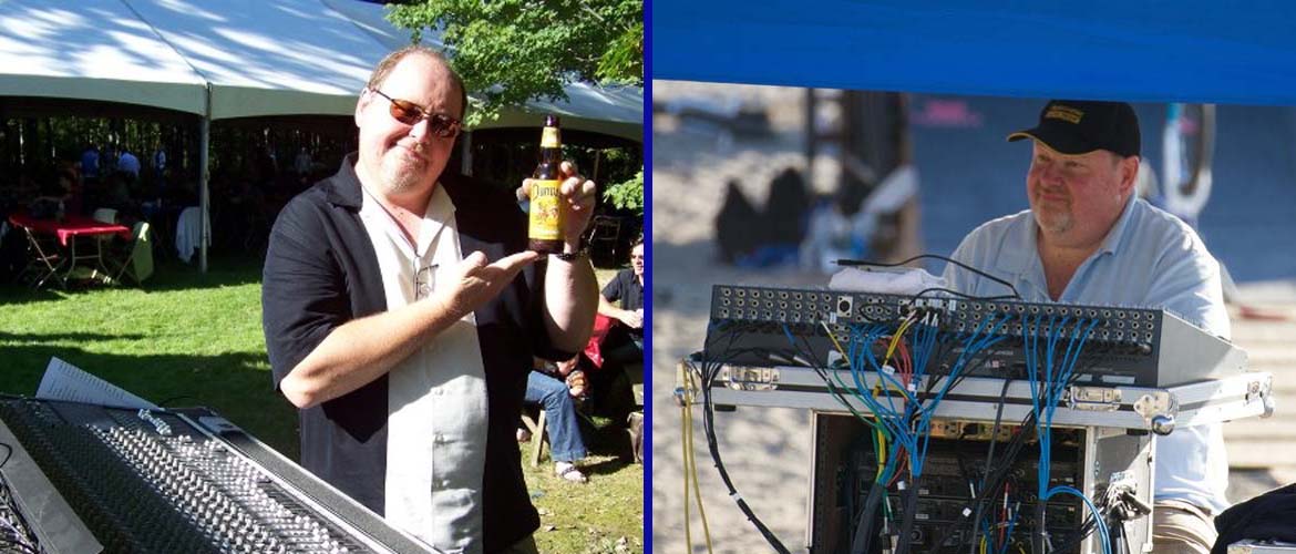 I started as the original bass guitar player in the band. We needed a bass player so I learned to play by default. After 7 years of banging on the strings, I decided to retire the bass and leave that instrument for more qualified people to play. Currently, I handle the front of house mix for the band and book the gigs for the band.